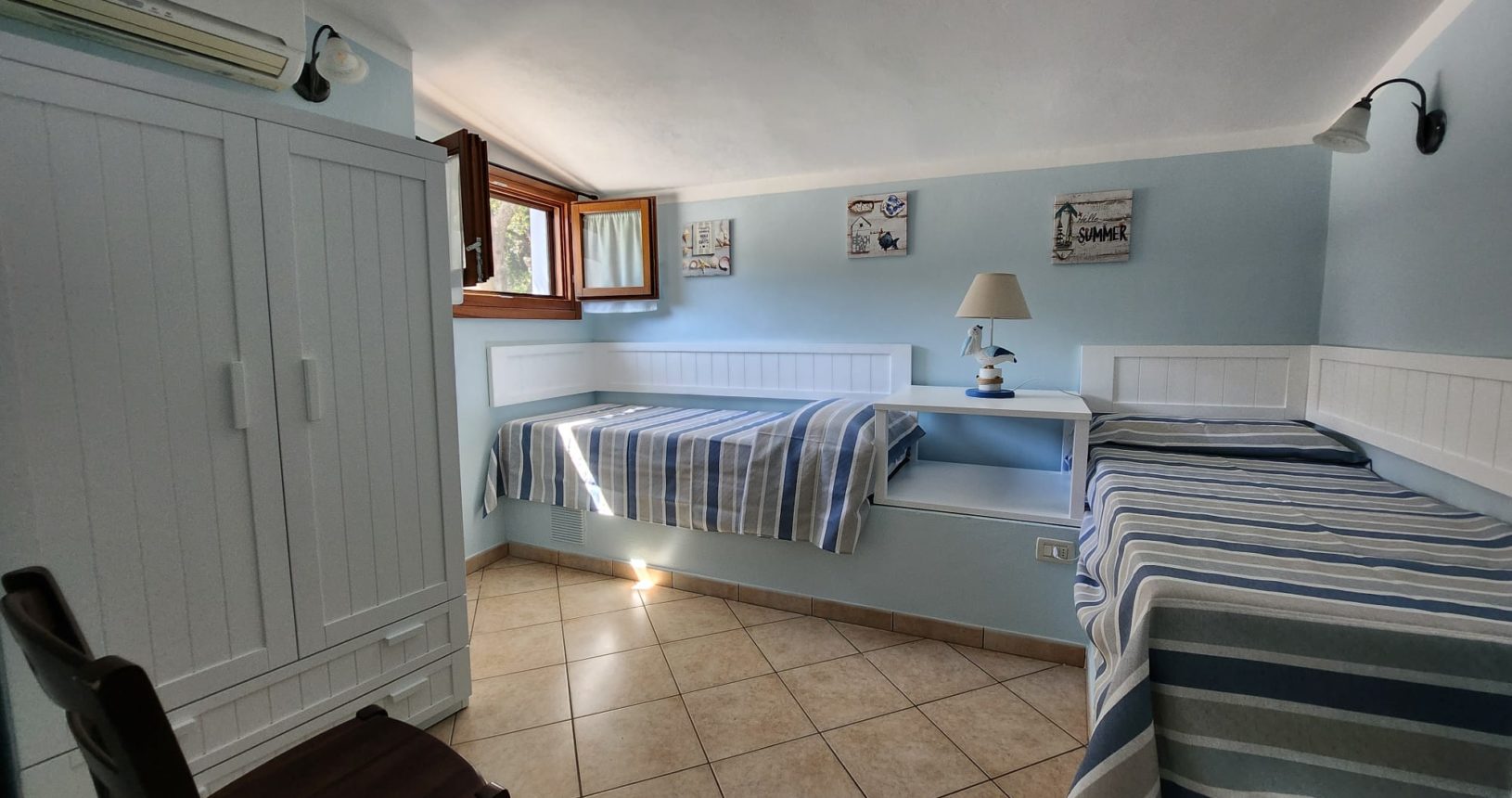 La villa può ospitare 6 persone ed è di circa 85mq. Dotata di ogni confort é composta da cucina, sala da pranzo con tavolo e sedie, 3 camere da letto con climatizzatore di cui 2 matrimoniali ed 1 al piano superiore con 2 letti singoli, 2 bagni con doccia, veranda attrezzata con tavolo e sedie con meravigliosa vista mare.